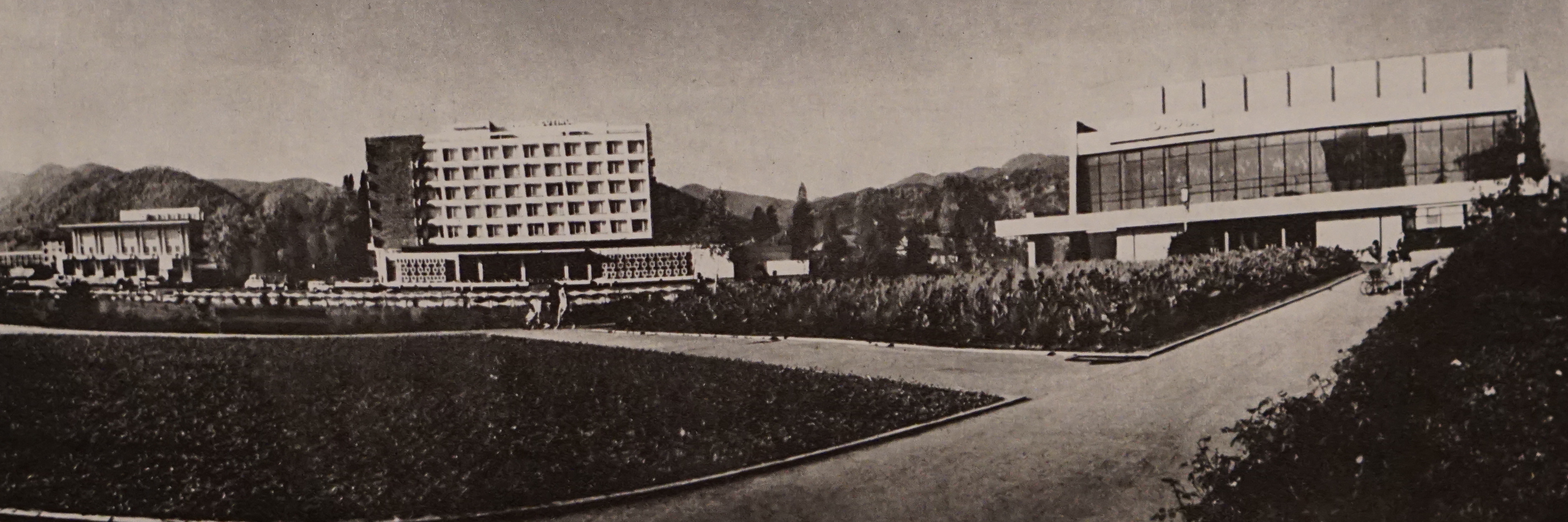 A szakszervezeti kulturális ház, Gutin Hotel (ma Carpați Hotel) és a Dacia mozi panorámája